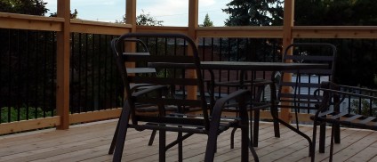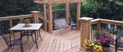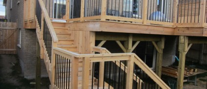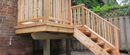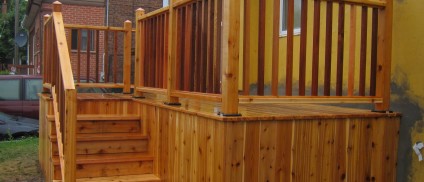 Maple Pt deck cedar rails,cutek stainCedar Railings  pressure treated  deck cutek stain in maple vaughan, custom deck carpenter View Project Detail Continue Reading Continue Reading